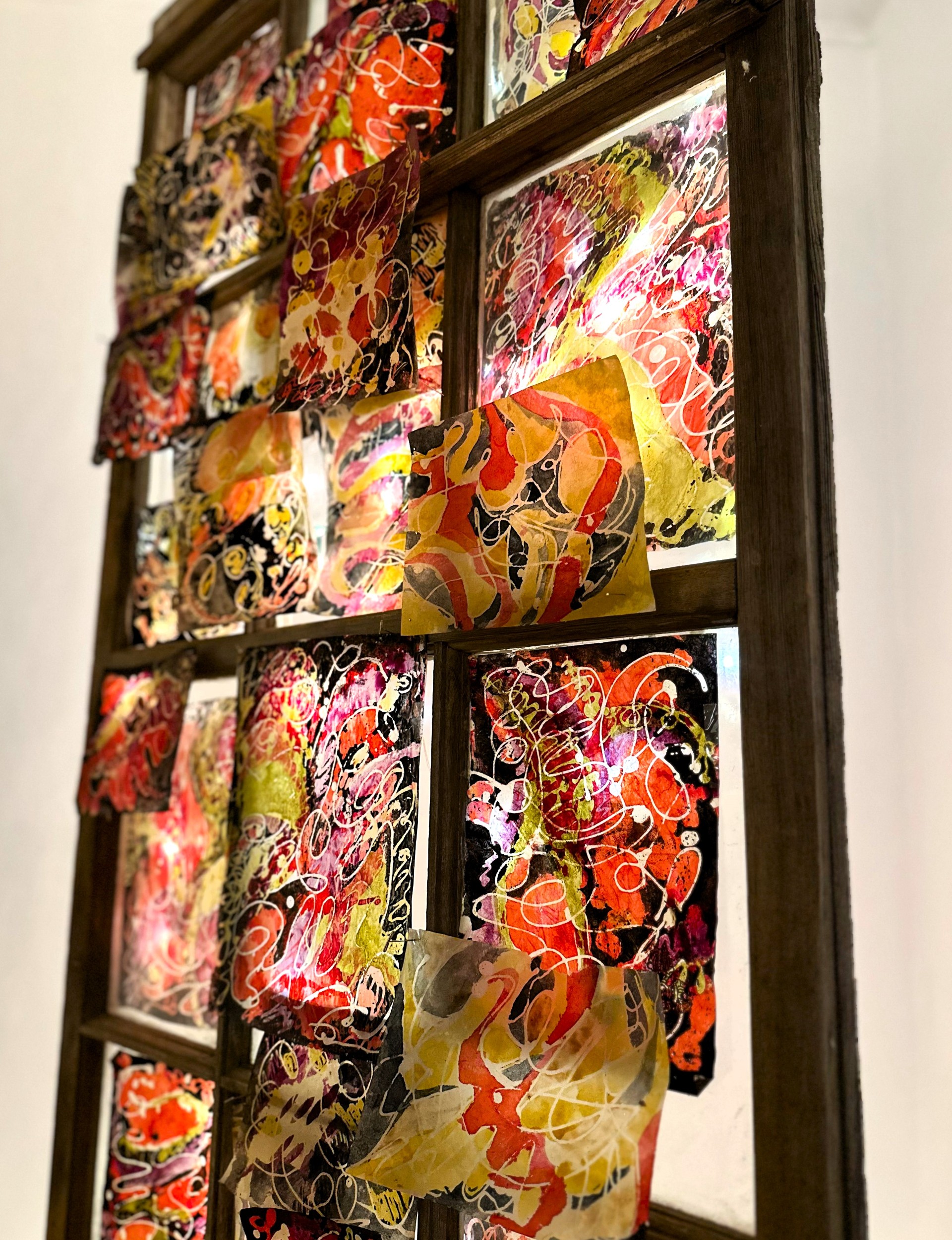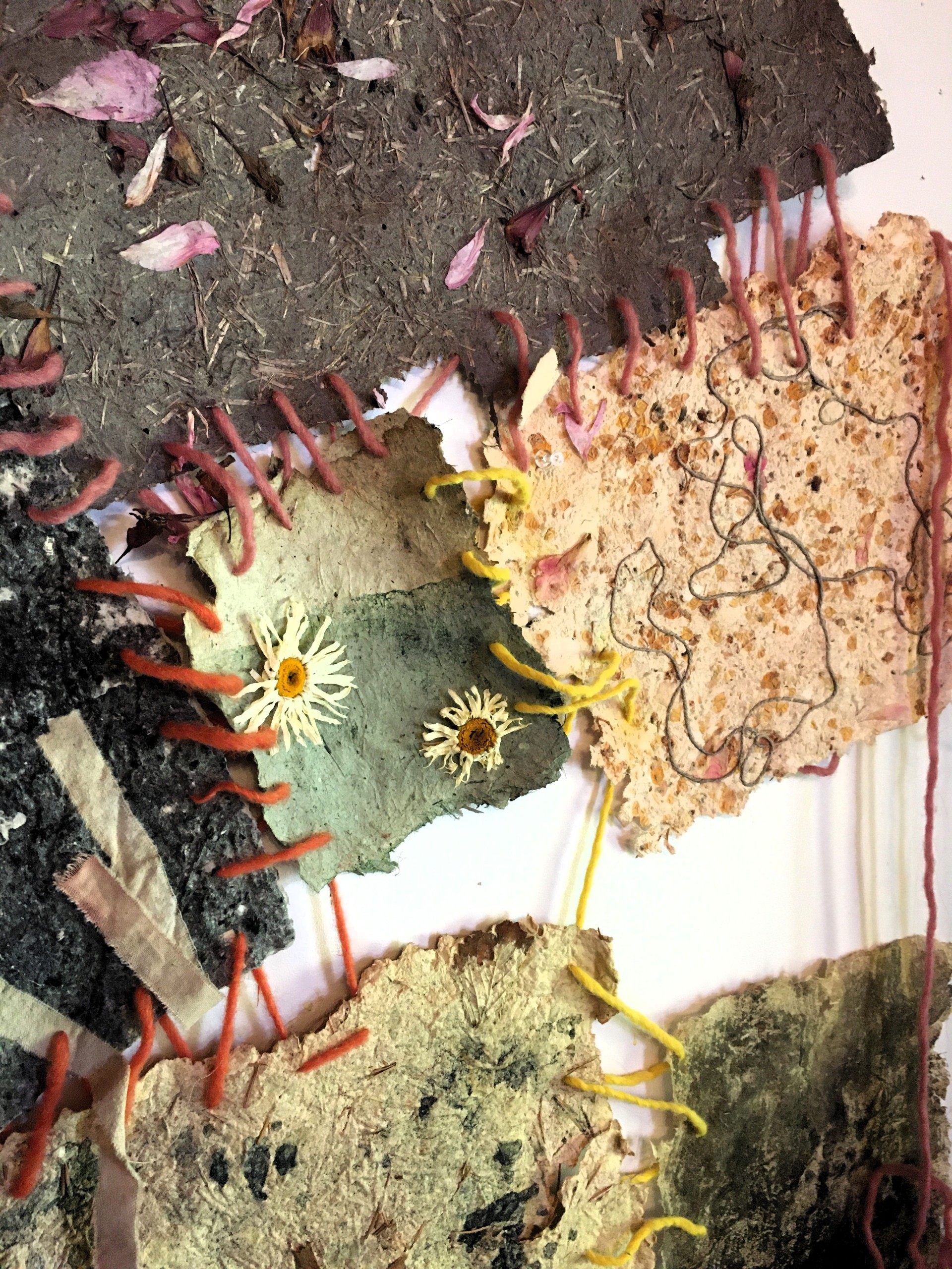 Sarah Hope is an autistic artist whose work is quite diverse, spanning from watercolour and oil paintings to hand dyed and handmade paper installations. Her themes have also traversed from the beauty of impermanence, grief and death, to women and neurodivergent researchers, to biodiversity and pollinators. Much of her artwork combines foraged and handmade materials with video, sound and lights to create immersive experiences. She also combines pigments made from rock and bone with traditional watercolour paint, creating paintings of local hummingbirds and owls that she photographs near her home. She has been extensively researching and creating with the under-represented mediums of handmade paper, natural dyes, and artist-made colour for many years. These multi-step processes are old crafts that align with her natural deep focus. Grinding rocks for colour or shredding plant fibres for paper both appeal to her needs to move the body and align with striving towards a sustainable art practice. By making slow art, she finds there is space created to process emotionally, which then transfers to the final work. Being recently diagnosed, she is still processing how her autistic traits such as sensory sensitivity and attention to detail have been instrumental in her art. Sarah has a diploma of Fine Arts and in 2023, she spent 6 weeks learning about the craft of fine paper at Penland School of Craft, North Carolina. With support from Canada Council for the Arts and BC Arts Council, she has presented her work in various galleries as solo and group exhibitions. In 2019 Sarah won the Marie Manson Art award which launched her interest in artist-made palettes. Sarah is a settler born and raised in Tkemlúps, (Kamloops), and works on the traditional lands Switzmalph te Secwepémc, (Salmon Arm).